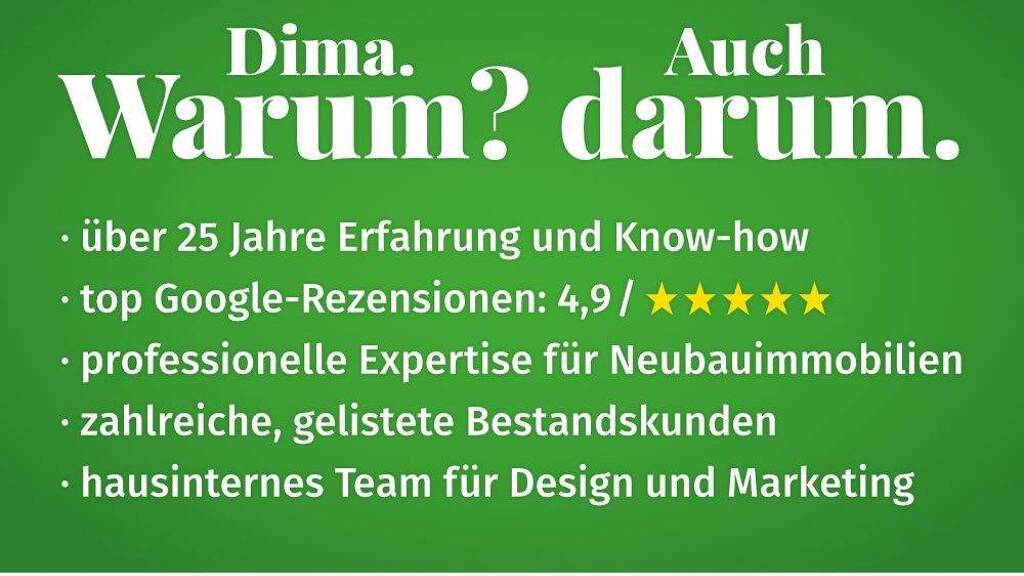 Alle Einheiten des Objekts und den aktuellen Reservierungsstand finden Sie auf unserer Webseite: dima-immobilien.de