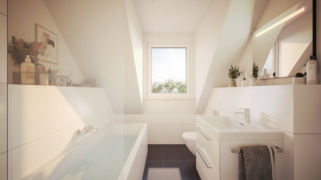 Bitte beachten Sie: Die dargestellten Visualisierungen und Grundrisse zeigen den aktuellen Planungsstand. Änderungen im Zuge der weiteren Ausführung bleiben vorbehalten. Alle Angaben dienen der ersten Information und stellen kein verbindliches Vertragsangebot dar. Abbildungen und Videos können in Teilen von der finalen Ausführung abweichen.