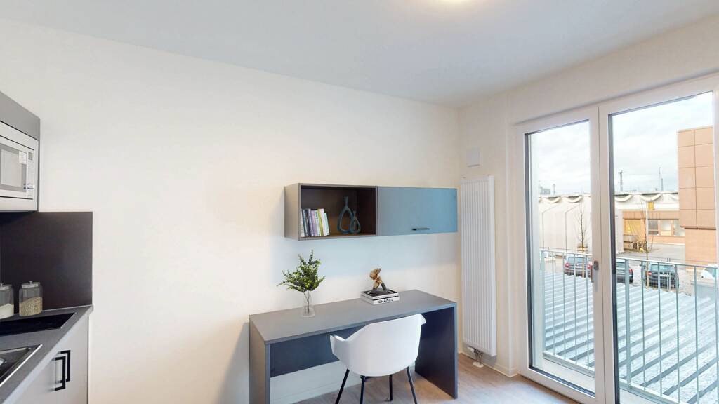 Durch die moderne Ausstattung und Möblierung können die neuen Bewohner des SMARTS Nürnberg unkompliziert mit dem Koffer einziehen. Die kompakten Grundrisse und maßgeschneiderte Möbilierung sorgt für ein durchdachtes und zeitloses Raumnutzungskonzept.