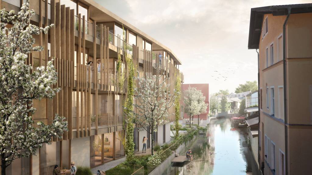 Ein Grundstück direkt am Wasser gelegen und doch mitten in der Stadt – eine so erstklassige Lage verdient eine Bebauung, die sich abhebt. Und das wortwörtlich.