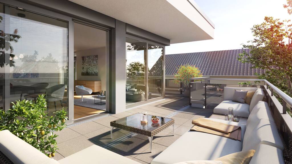Die Sonnendecks im Obergeschoss und die stylischen Dachterrassen der Penthäuser sind bei diesem Bauvorhaben architektur- und namensprägend und gleichzeitig von absolut hohem Wohnwert! Als Highlight ergänzen sie die ohnehin großzügigen Wohnungen wie ein zusätzliches Freiluft-Zimmer.