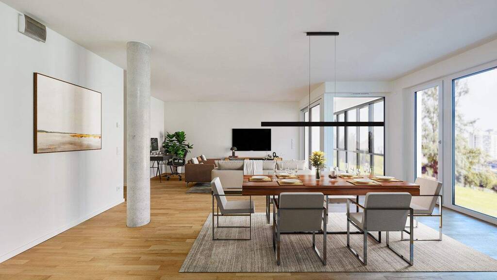 Ausstattung wie Parkettboden, bodentiefe Fenster und Fussbodenheizung sind selbstverständlich. Außen liegende Textilscreens mit elektrischer Steuerung und Austritte je nach Wohnung wie verglaste Balkone, Loggien und Dachterrassen unterstreichen den Flair. Bodengleiche Duschen und Markenarmaturen begrüßen Sie im Bad. Glasfaseranschluss - natürlich.