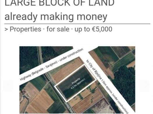 Energieausweis: ZU DIESER IMMOBILIE LIEGT DERZEIT NOCH KEIN ENERGIEAUSWEIS VOR. IN VORBEREITUNG. GROSSES GRUNDSTÜCK VON 42.300 m2 AM EINGANG ZUR NEUEN AUTOBAHN BIJELJINA, BOSNIEN UND HERZEGOWINA DERZ...