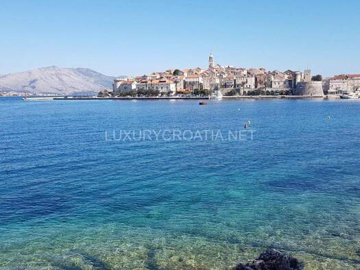 Dieses Haus am Meer in der kroatischen Stadt Korcula ist nur 5 Meter vom Strand entfernt. Dazwischen verläuft zwar eine Straße, aber dort herrscht fast kein Verkehr. Dies ist ein Doppelhaus mit 4 Eta...