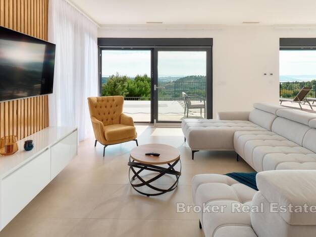 Neue Luxusvilla in der Nähe von Split Zum Verkauf steht eine neu gebaute, moderne Villa in ruhiger Lage, nur 10 Minuten von den schönsten Stränden und allen wichtigen Annehmlichkeiten des täglichen L...