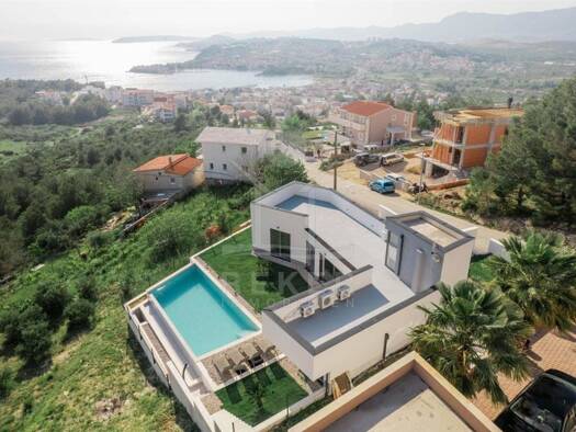Eine außergewöhnliche Villa mit moderner Konstruktion und luxuriöser Dekoration. Nur wenige Kilometer südlich von Split, auf einem Hügel mit herrlichem Blick auf Split, die Inseln und das Meer, befin...