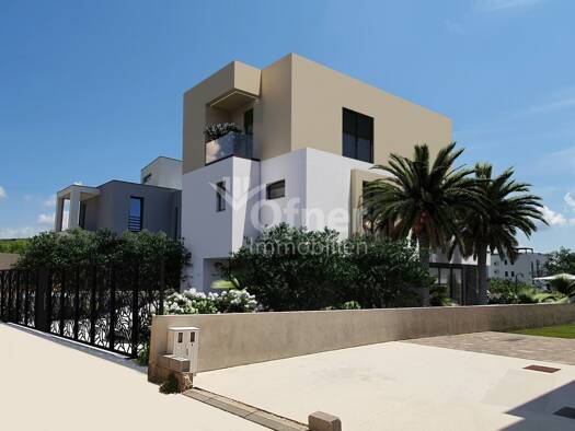 Mediterranes Lebensgefühl, moderne Architektur und ein spürbarer Bezug zum Meer verschmelzen in dieser neu erbauten Villa in Kozino zu einem außergewöhnlichen Wohnkonzept. Nur wenige Gehminuten von d...