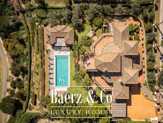 a luxurious mediterranean villa located in the hills of sotogrande, in the area of hotel so/sotogrande and almenara golf course, with beautiful mountain views. the entrance is through a courtyard tha...