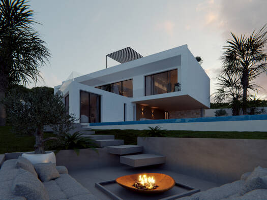 This modern villa is located in the gated and secured community Vista Alegre near the charming village of Es Cubells. Brand new contemporary villa with infinity pool, 559 m2 of well appointed interio...