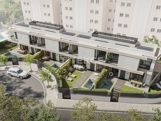 Kurzbeschreibung Umweltfreundliche Stadthäuser mit Privatgarten und Swimmingpool in Malaga in einem renommierten Wohnviertel, das für seine eleganten Straßen und die Nähe zum Stadtzentrum bekannt ist...