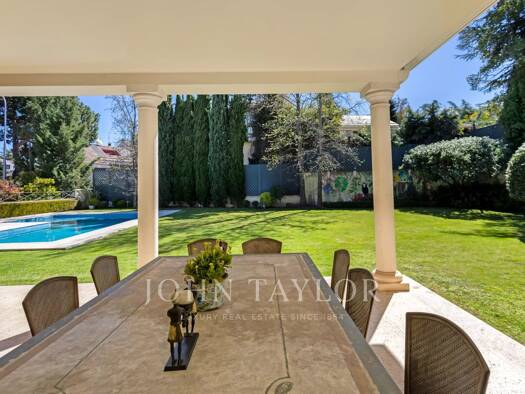 wonderful 2-storey house in an oasis only10 minutes away from madrid. the house is made with exquisite taste, has several living rooms, 8 bedrooms, 10 bathrooms, work area, gym, swimming pool and a g...
