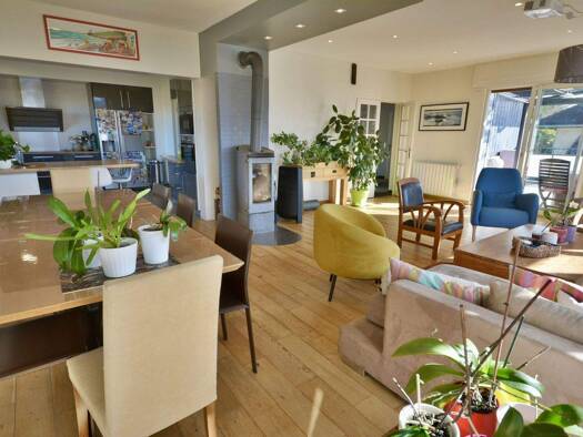 Ideally located at the end of a cul-de-sac, this house of almost 300m2 of living space (434m2 in total) combines comfort and generous volumes in a peaceful and green setting. The interior layout incl...
