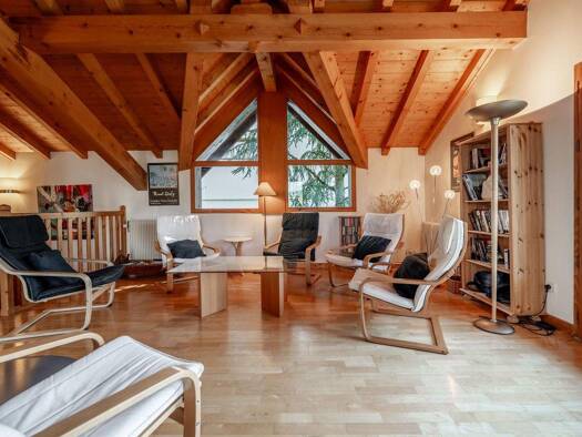 Auf rund 220 Quadratmetern bietet diese luxuriöse Ferienoase höchsten Wohnkomfort für acht bis zehn Personen und vereint alpinen Charme mit modernem Design. Großzügige Fensterfronten eröffnen einen a...