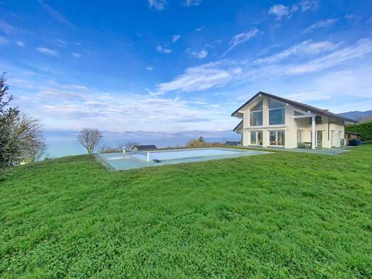 Evian - Ideally located contemporary villa offering exceptional panoramic views over the lake. From the moment you enter, you will be charmed by the generous volumes and high-end finishes. The ground...