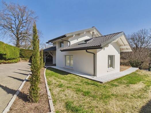 Exceptional location just ten minutes from Geneva, near Vesenaz, a welcoming family sized furnished house of 240 m2 with superb views of Lake Geneva and the Jura. Beautiful volume for a living room o...