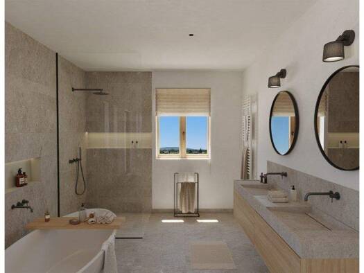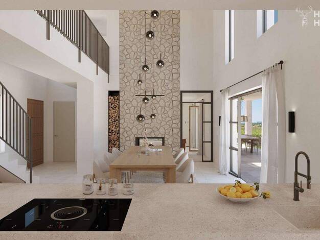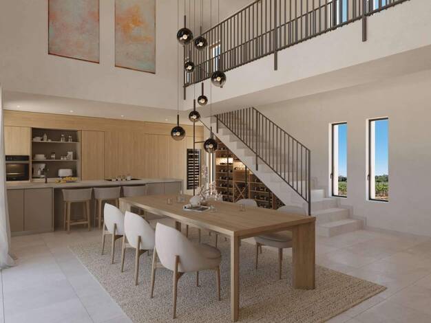 nmitten der weitläufigen Weinlandschaft zwischen Binissalem und Sencelles entsteht diese außergewöhnliche Neubaufinca, die moderne Architektur mit traditioneller mallorquinischer Handwerkskunst auf e...