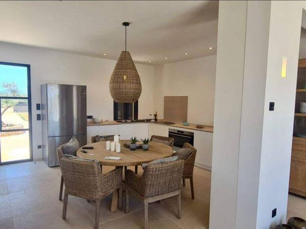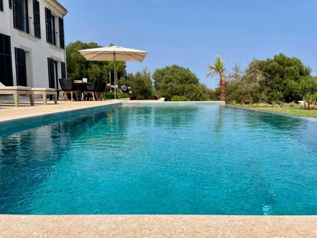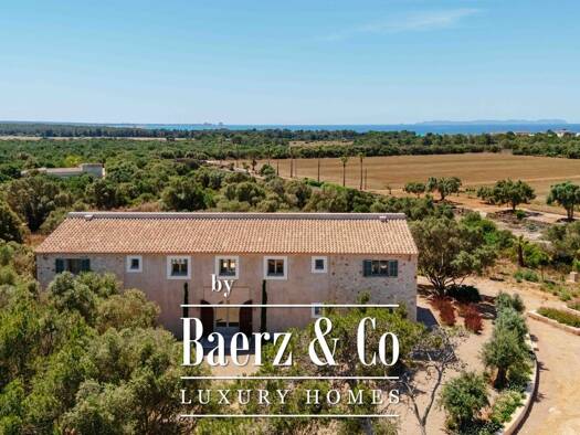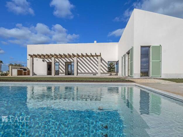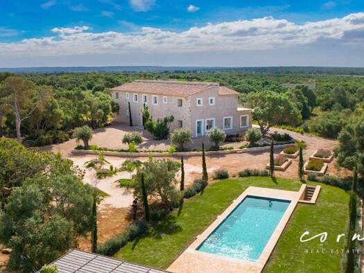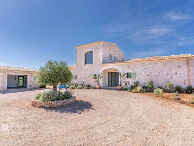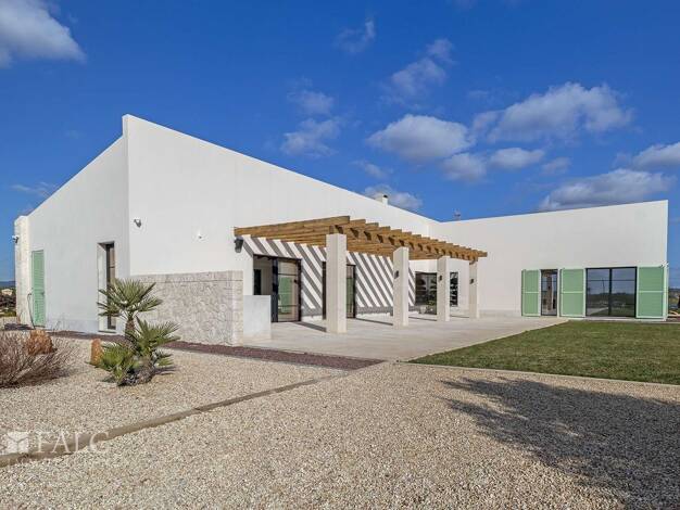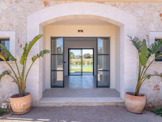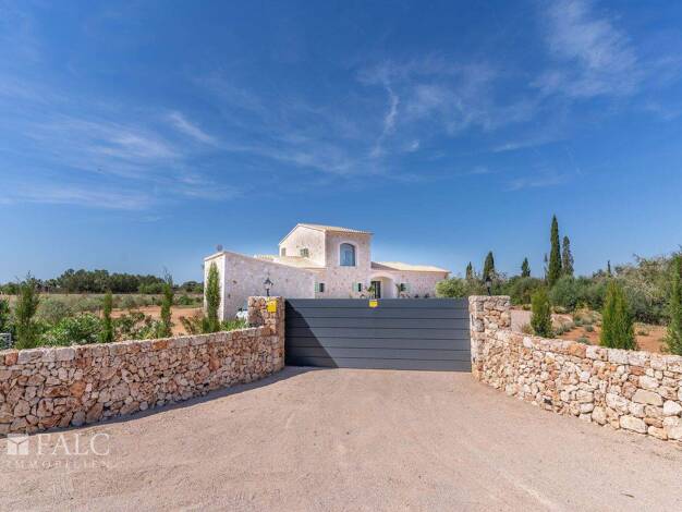 Diese exklusive Neubaufinca wurde 2024 auf einem weitläufigen Grundstück in ruhiger Lage nahe Campos errichtet. Sie verbindet traditionell-mallorquinische Architektur mit modernem Wohnkomfort und bes...