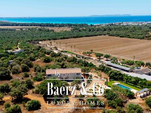 Diese moderne Neubaufinca, fertiggestellt im Jahr 2024, liegt auf einem ca. 4,6 Hektar großen Grundstück zwischen dem Naturstrand von Es Trenc und dem charmanten Ort Campos. Die Immobilie bietet eine...