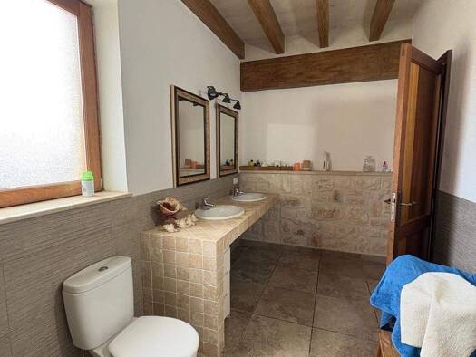 Bienvenido a esta finca rústica independiente de ensueño en estilo mallorquín. La majestuosa construcción de piedra con vigas de madera, techos altos y amplias habitaciones le ofrece una experiencia ...