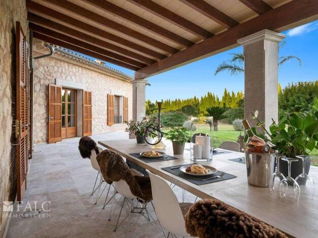 Diese außergewöhnliche Neubaufinca, entworfen im Stil der renommierten Bastidas-Architekten, vereint traditionelle mallorquinische Handwerkskunst mit modernstem Wohnkomfort - ein Ort, an dem mediterr...