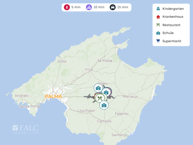 Ein 2002 erbautes, voll legales Landhaus steht zum Verkauf. Es ist bezugsfertig und liegt nur 10 Minuten von Sineu entfernt in einer privilegierten, naturnahen Umgebung, die Ruhe, absolute Privatsphä...