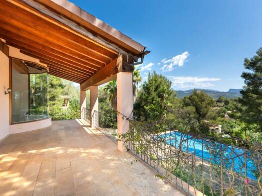 An der Nordwestküste Mallorcas, in einem der schönsten Dörfer der Insel, präsentieren wir diese herrliche rustikale Villa im mallorquinischen Stil mit grossem Swimmingpool und Meerblick in der emblem...