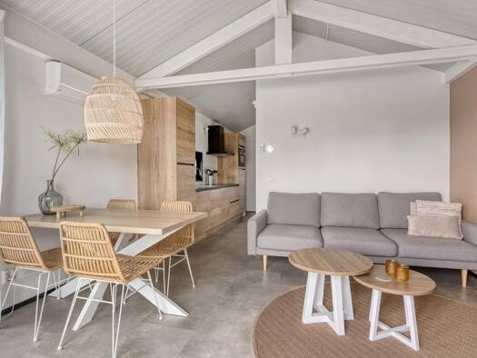 Dieses 6-Personenhaus mit einer Wohnfläche von 91 Quadratmetern hat ein wunderschönes, schlichtes Design, verteilt auf zwei Etagen. Mit Balkon und großen Glasfenstern, die in mehreren Bereichen für w...