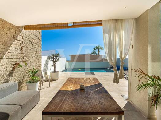 Ein Traumhaus in La Caleta mit einer perfekten Kombination aus modernem Design, gehobenem Komfort und einem wunderschönen Außenbereich. Diese elegante Villa verfügt im Erdgeschoss über zwei Schlafzim...