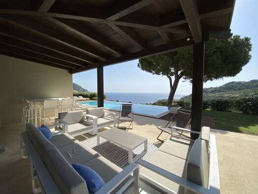 This exclusive villa, set on a 1610 m2 plot, offers breathtaking panoramic views of the Mediterranean Sea. Its southeast orientation guarantees an abundance of natural light throughout the day and wa...