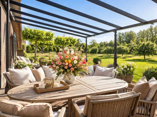 exclusive country house on a large plot, with guest house, swimming pool, and paddocks for horses on the edge of the picturesque village of geesteren stands this magnificent country house with guest ...