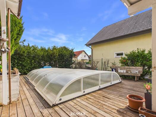 Kurzbeschreibung Traumhaftes und topgepflegtes Reihenhaus in Passivhausbauweise im Herzen von Teesdorf mit Pool und großem Carport. Objekt Das Reihenhaus ist straßenseitig über einen großzügigen Vorp...