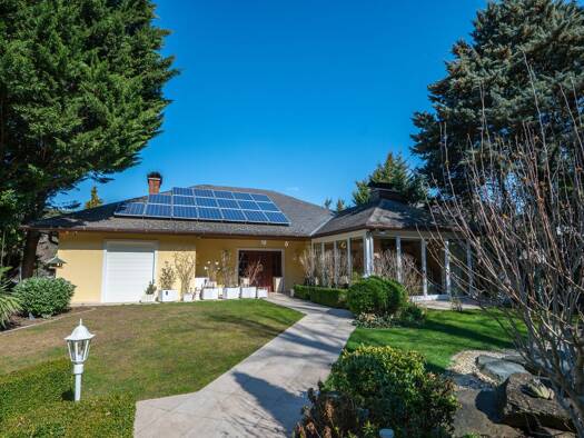 Das Einfamilienhaus in eingeschoßiger Bungalow-Bauform wurde ca. 1980 errichtet. Es befindet sich auf einem großen Grundstück mit ca. 767 m² in Ruhelage, mit einem unverbauten Blick auf die Felder in...