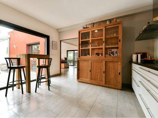 Contemporary property in a quiet environment - Located in a residential area close to all amenities - 4 bedrooms, a studio, garage and beautiful pool area - Beautiful garden of 3000 m2 terraced and w...