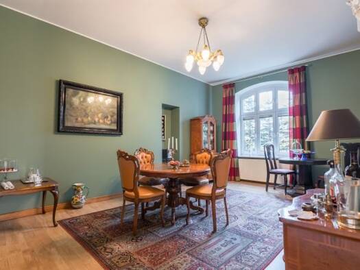 Wir verkaufen ein wunderschönes, historisches Einfamilienhaus vom Ende des 19. Jahrhunderts, entworfen vom deutschen Architekten Max Schmidt. Das Haus wurde mit schönem Interieur, das einem Gutshof ä...