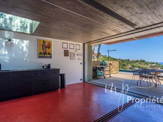 this perfectly renovated villa, seemingly perched on the water, offers a unique invitation to escape. nestled into mediterranean rock, this property, serenaded by the waves and pure sea air, boasts 2...