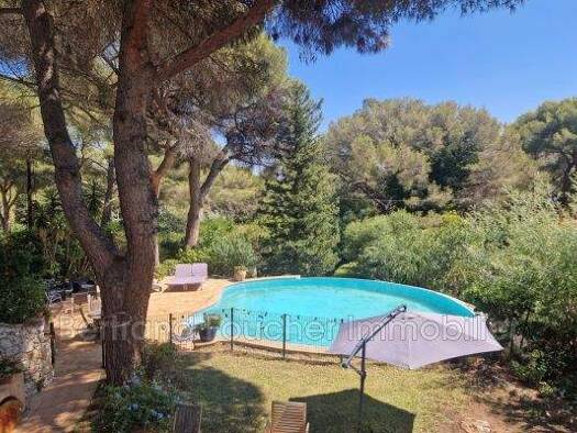 Nestled in a commanding position at the end of a cul-de-sac in a quiet neighborhood, this elegant Provencal villa offers panoramic views from Cap Lardier to the Iles d'Or. The 1600 m2 grounds, adorne...