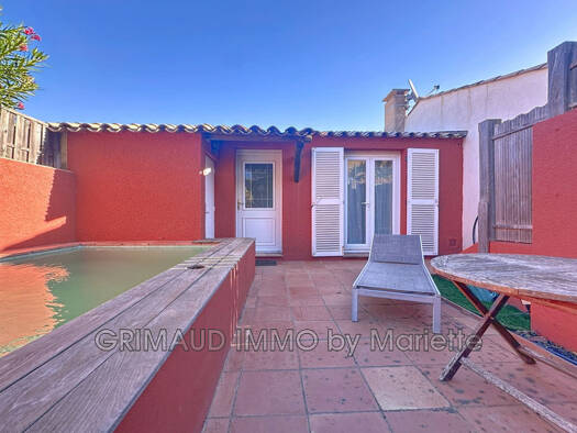 Reiheneckhaus auf einer Seite, zu Fuß vom Dorf Grimaud entfernt, mit Pool (4x2) und zwei schönen Terrassen, bestehend aus: Eingang, offene, ausgestattete Küche, Wohnzimmer mit Kamin/Essbereich, der z...