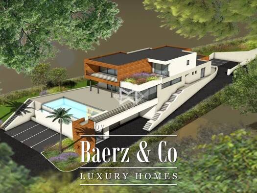 Moderne Architektenvilla in ruhiger Lage, uneinsehbar, mit atemberaubendem Panoramablick auf das Meer. Diese exklusive Immobilie erstreckt sich über zwei Etagen und verfügt über ein großzügiges, lich...