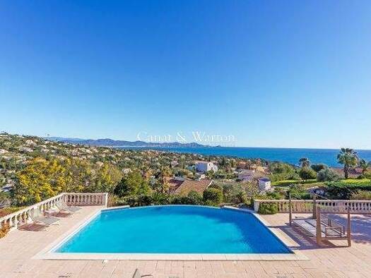 In einer dominanten Lage und nur wenige Minuten von den Stränden entfernt bietet diese Villa in ausgezeichnetem Zustand ein außergewöhnliches Panorama über das Mittelmeer und das Petites-Maures-Massi...