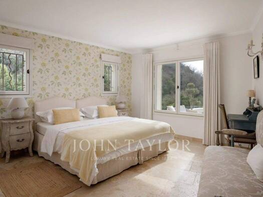 Exceptional view from Cap Ferrat to Cap d'Antibes, all the way to the Esterel massif, offering magnificent sunrises and sunsets for this 6-room Provencal villa with pool plus annexes. This property i...
