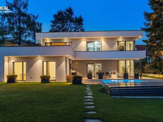 PRIVATE DESIGNER-VILLA MIT POOL, SPA & GÄSTEHAUS - VOLL AUSGESTATTET & BEZUGSBEREIT IN GRAZ Diese außergewöhnliche Designer-Villa vereint moderne Architektur, technische Perfektion und luxuri...