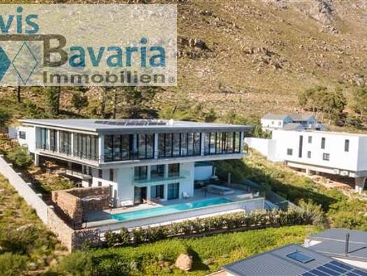 Kurzbeschreibung Dieses markante Haus, thront erhaben in den Bergen von Gordon's Bay. Mit einem Ausmaß und einer Erhabenheit, die man selten findet, umfasst der Ausblick die False Bay und die Stadt w...