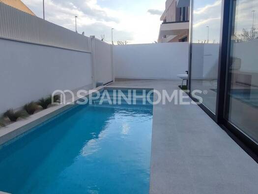 Kurzbeschreibung Die freistehenden Villen mit einzigartigen Designs und drei Schlafzimmern befinden sich in Torre de la Horadada. Die Villen haben eine ideale Lage, nur 500 m vom malerischen Strand e...
