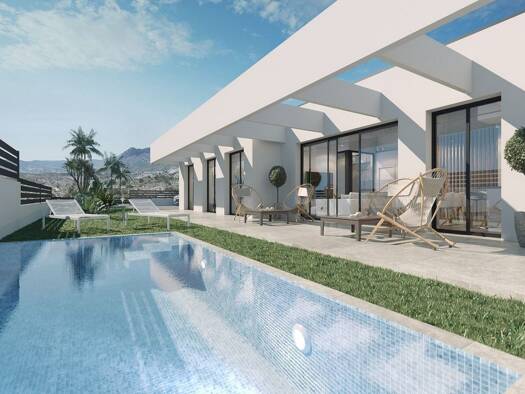 Kurzbeschreibung Diese Villen in Finestrat bieten Privatsphäre, private Pools und ebenerdige Grundrisse innerhalb einer Wohnanlage mit hervorragenden Gemeinschaftseinrichtungen an. Objekt Moderne fre...