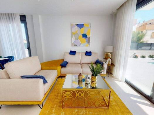 Kurzbeschreibung Elegante 3-Zimmer-Häuser in Alicante, Guardamar del Segura befinden sich in einer Anlage mit Pool und Garten. Die geräumigen Häuser liegen in der Nähe des Golfplatzes. Objekt 3-Zimme...