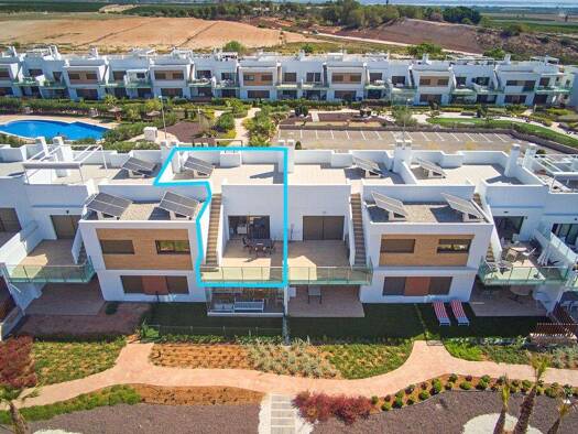 Wir präsentieren diese wunderschöne Eckvilla. Brandneue Anlage mit 15 Villen mit drei Schlafzimmern und zwei Bädern, jeweils mit privatem Pool, verteilt auf zwei Etagen mit optionalem Solarium. Die A...