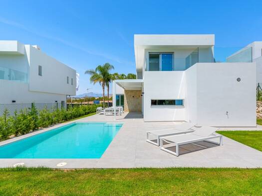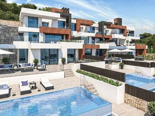 Kurzbeschreibung Elegante 3 bis 4 Schlafzimmer Villen in einer ruhigen, bewachten Anlage in Finestrat, zwischen Bergen und Meer, nur wenige Minuten von Stränden, Golfplätzen, städtischen Annehmlichke...