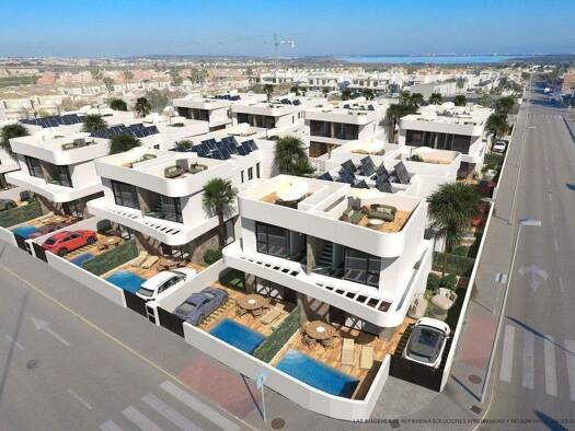 Kurzbeschreibung Moderne 3 SchlafzimmerVillen in La Herrada, Los Montesinos, mit hochwertiger Ausstattung, Privatparkplatz und optionalem Pool oder Solarium nahe von Salzseen und den Stränden der Cos...