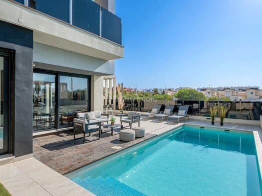 Moderne Villa mit 4 Schlafzimmern, 4 Bädern, privatem Pool, Dachterrasse und großem Keller. Top-Lage in Lomas de Cabo Roig – fußläufig zu Einkaufsmöglichkeiten, Restaurants und dem Strand. Offenes Wo...