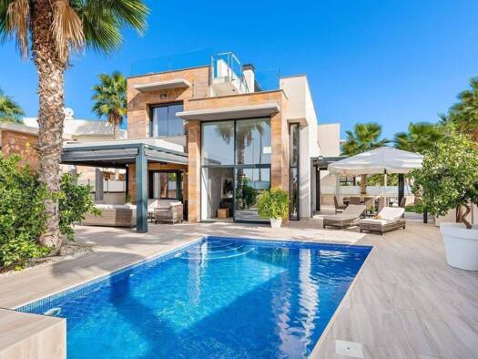 Luxuriöse Neubauvilla zum Verkauf in La Zenia, Orihuela Costa Exklusives Wohnen in Strandnähe an der Costa Blanca Nur 1 km von den Sandstränden von La Zenia entfernt, bietet diese atemberaubende Luxu...